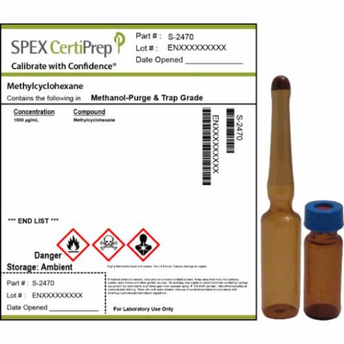 Methylcyclohexane Single-Component Organic Standard, 1,000 µg/mL (1,000 ppm), CAS #108-87-2 in Methanol-P&T, 1 mL
