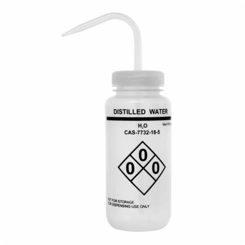 This wash bottle features easy to read labelling and safety warnings. Labelled for Distilled Water with transparent screw cap and nozzle. 500ml capacity. Each wash bottle is self venting and is made of low density polyethylene. Bottle measures 9.25" with cap (6.5" without) and is 2.75" in diameter. Also available in 1000ml size (CH0179H)
