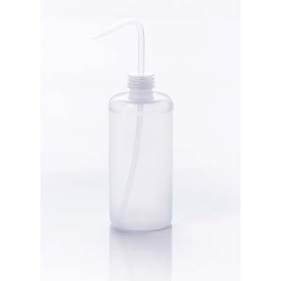 Low-density polyethylene wash bottles with different colors of polypropylene closures.